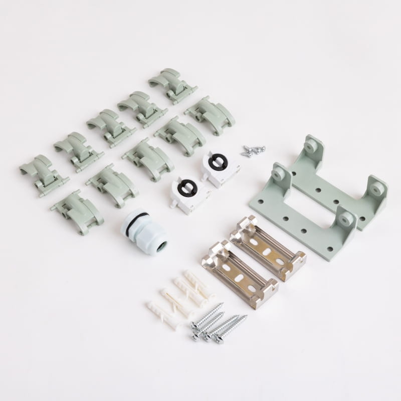 Wszystkie akcesoria oprawy (gniazda, uchwyty, zapięcia klosza) w zestawie są do samodzielnego złożenia.